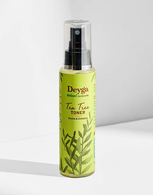 Deyga's Tea tree Facial Toner: It deeply cleans your skin by kicking out impurities responsible for clogged pores. Healthy, glowing and clear skin is not far away when Tea tree toner plays!
